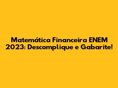Matemática Financeira ENEM 2023: Descomplique E Gabarite!