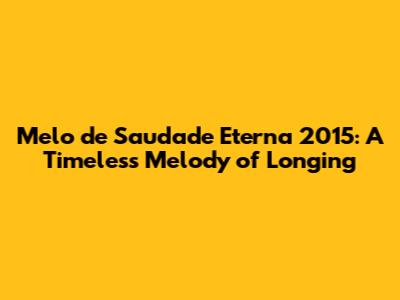 Melo De Saudade Eterna 2015: A Timeless Melody Of Longing