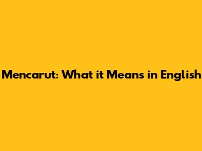Mencarut: What It Means In English