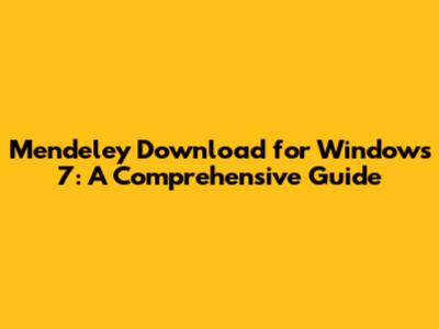 Step-by-Step Guide: Downloading and Installing Mendeley on Windows 7