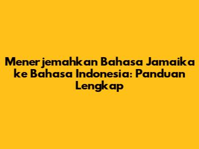 Menerjemahkan Bahasa Jamaika Ke Bahasa Indonesia: Panduan Lengkap
