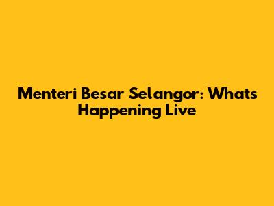 Menteri Besar Selangor: What's Happening Live
