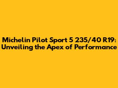 Hey there, car enthusiasts! Are you ready to dive deep into the world of high-performance tires? Today, we're putting the spotlight on a true champion: the Michelin Pilot Sport 5 235/40 R19. This tire isn't just rubber and steel; it's a meticulously engineered masterpiece designed to elevate your driving experience to a whole new level. We'll explore everything from its cutting-edge technology to its real-world performance, giving you the lowdown on why this tire is a top contender in its class. Buckle up, guys, because we're about to embark on an exciting journey into the realm of superior grip, precision handling, and unmatched driving pleasure.