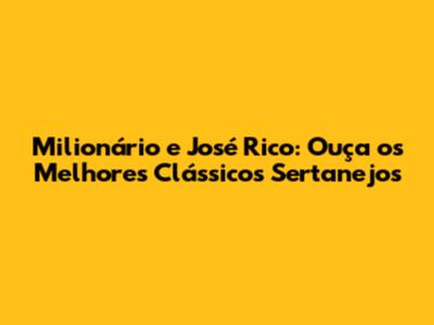 Milionário E José Rico: Ouça Os Melhores Clássicos Sertanejos