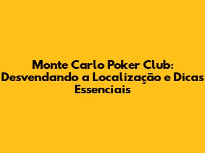 Onde fica o Monte Carlo Poker Club? Agora você sabe! Localizado no coração de Monte Carlo, Mônaco, este clube de poker oferece uma experiência inigualável para os entusiastas do jogo. Desde sua localização privilegiada até as dicas essenciais para sua visita, este guia completo forneceu todas as informações necessárias para planejar sua noite perfeita. Com a combinação de um ambiente luxuoso, jogos de alta qualidade e um serviço impecável, o Monte Carlo Poker Club promete uma experiência inesquecível.