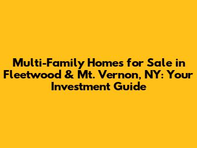Hey everyone, and welcome back! Today, we're diving deep into a topic that's super exciting for both seasoned investors and those just starting out: multi-family homes for sale in Fleetwood and Mount Vernon, NY. If you're looking to get into real estate investing or expand your portfolio, these areas offer some fantastic opportunities. We're talking about properties that can generate rental income, appreciate over time, and build serious wealth. So, grab a coffee, settle in, and let's explore what makes these New York locations so appealing for multi-family investments. We'll cover why these specific neighborhoods are hot, what to look for when you're house hunting, and some tips to help you snag the perfect deal. It's not just about finding a house; it's about finding a smart investment that works for you.
