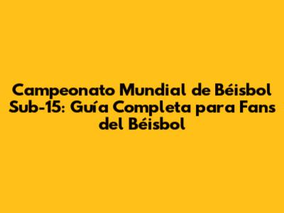 Mundial Sub-15: Guía Completa Para Fans Del Béisbol