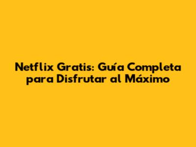 Netflix Gratis: Guía Completa Para Disfrutar Al Máximo