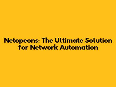 Netopeons: The Ultimate Solution For Network Automation