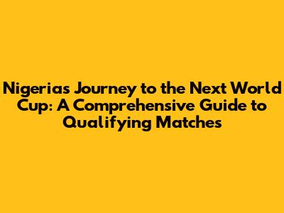 Hey football fanatics! Are you as hyped as I am about the Nigeria national football team and their quest for glory in the next FIFA World Cup? Well, you're in the right place! This article is your one-stop guide to everything you need to know about the Super Eagles' upcoming qualifying matches. We're talking dates, opponents, potential scenarios, and a sprinkle of insider analysis to keep you ahead of the game. Get ready to dive deep into the world of Nigerian football and gear up for an exhilarating ride! Let's get this party started, guys!