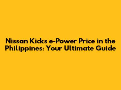 Nissan Kicks E-Power Price: Philippines Guide