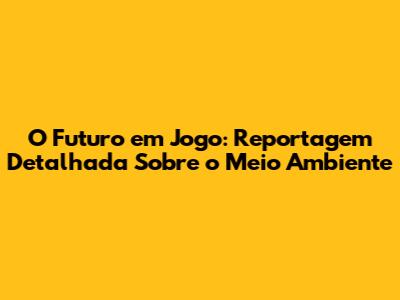 O Futuro Em Jogo: Reportagem Detalhada Sobre O Meio Ambiente