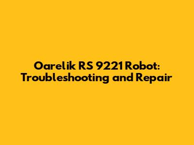 First off, let's chat about some common issues that can plague your Oarelik RS 9221 robot. Understanding these problems is the first step towards a successful fix.