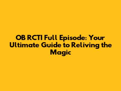 OB RCTI Full Episode: Your Ultimate Guide to Reliving the Magic
