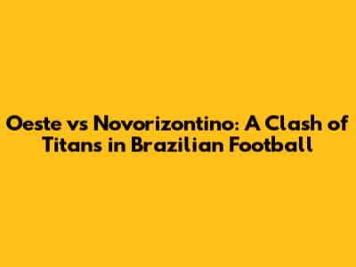 Hey guys, get ready for a deep dive into an exciting match-up in Brazilian football! We're talking about Oeste versus Novorizontino, a clash that's sure to get the fans hyped up. In this article, we'll break down everything you need to know: the teams' current forms, player analyses, tactical approaches, and, of course, our predictions. So, buckle up and let's get started on this amazing journey through the world of football.