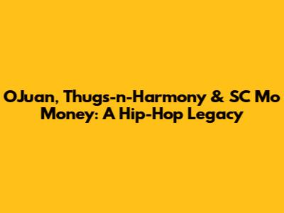 Hey guys, let's dive into the amazing world of hip-hop and explore the legacies of OJuan, Thugs-n-Harmony, and SC Mo' Money. These artists, individually and collectively, have left an indelible mark on the music industry, influencing countless musicians and shaping the sound of a generation. We're going to break down their contributions, their impact, and what made them so unique. Get ready for a trip down memory lane, filled with iconic tracks, groundbreaking sounds, and a whole lot of heart! This is a deep dive into the lives and careers of three titans of the hip-hop scene, examining their individual journeys and the shared history that binds them together. We'll explore how they navigated the challenges of the industry, the creative processes that fueled their success, and the cultural impact they had on the world. This is not just a history lesson; it's a celebration of the music, the artistry, and the enduring power of hip-hop.