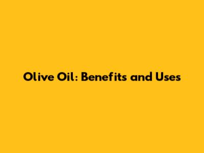 Olive Oil: Benefits And Uses