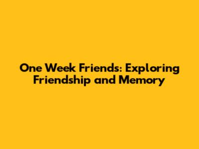 Why "One Week Friends" Resonates with Audiences