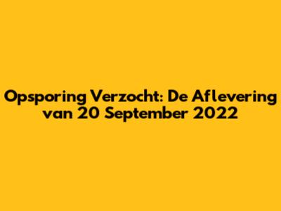 Opsporing Verzocht: De Aflevering Van 20 September 2022