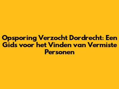 Opsporing Verzocht Dordrecht: Vind Vermiste Personen