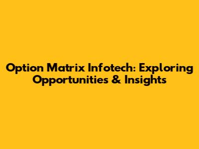 Option Matrix Infotech: Exploring Opportunities & Insights
