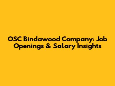 OSC Bindawood Company: Job Openings & Salary Insights