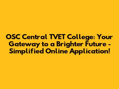 OSC Central TVET College: Easy Online Application Guide