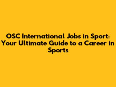 Exploring the Diverse Range of OSC International Sports Jobs