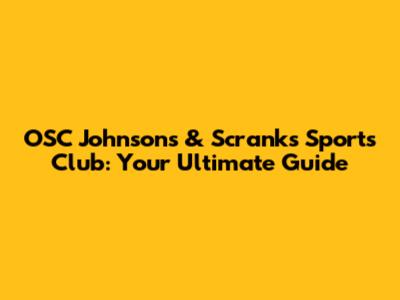 OSC Johnson's & Scranks' Sports Club: Your Ultimate Guide