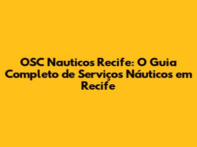 OSC Nauticos Recife: Tudo Sobre Serviços Náuticos