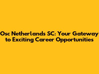 Osc Netherlands SC: Your Gateway To Exciting Career Opportunities