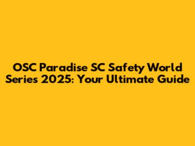 OSC Paradise SC Safety World Series 2025: Your Guide