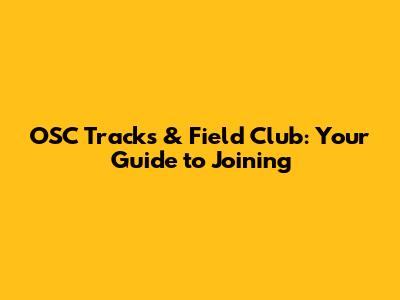 OSC Tracks & Field Club: Your Guide To Joining