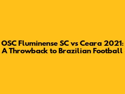 Hey guys! Let’s take a trip down memory lane and revisit that exciting clash between OSC Fluminense SC and Ceara back in 2021. For fans of Brazilian football, this match was more than just a game; it was a showcase of skill, strategy, and the raw passion that defines the sport in Brazil. In this article, we’ll dissect the key moments, analyze the tactics, and remember the standout players from OSC Fluminense SC vs Ceara 2021.