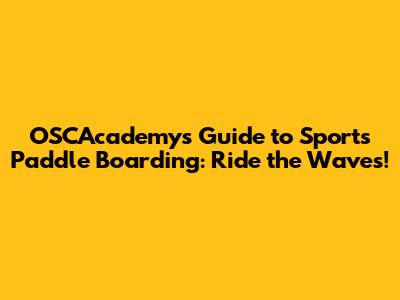 OSCAcademy's Guide To Sports Paddle Boarding