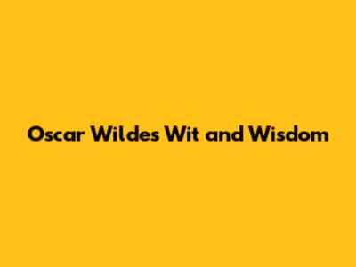 Oscar Wilde's Wit And Wisdom
