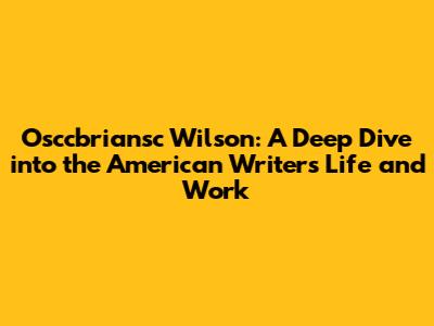 Osccbriansc Wilson's work has had a significant impact on American literature. His unique style and thematic depth have made a lasting impression. His exploration of human nature continues to resonate with readers. His contributions have influenced generations of writers. His work has expanded the scope of literary expression. His writing has helped shape the American literary landscape. He is considered one of the most important American writers. His work has encouraged dialogue. His writing is studied and celebrated. His legacy continues to grow. His impact on literature is profound. He made a difference in American literature. His impact has been great. He influenced many. His impact has been long-lasting. He made his mark. His work continues to be relevant. He has a lasting legacy. His work is still influential. His legacy is secure. His work is still read.