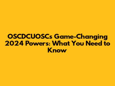 OSCDCUOSC's Game-Changing 2024 Powers: What You Need To Know