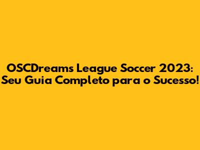 OSCDreams League Soccer 2023: Seu Guia Completo Para O Sucesso!