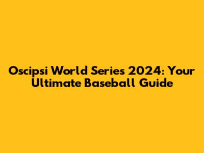 Oscipsi World Series 2024: Your Ultimate Baseball Guide