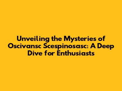 Unveiling the Mysteries of Oscivansc Scespinosasc: A Deep Dive for Enthusiasts