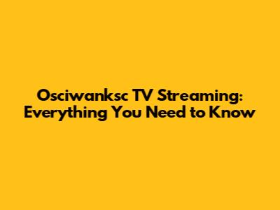 Osciwanksc TV Streaming: Everything You Need To Know