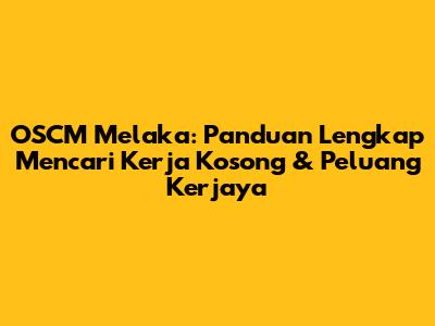 OSCM Melaka: Cari Kerja Kosong & Peluang Kerjaya Terbaik