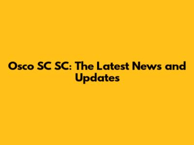 Osco SC SC: The Latest News And Updates