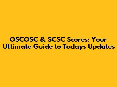 OSCOSC & SCSC Scores: Latest Updates & Analysis