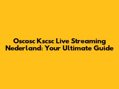 Oscosc Kscsc Live Streaming Nederland: Your Guide