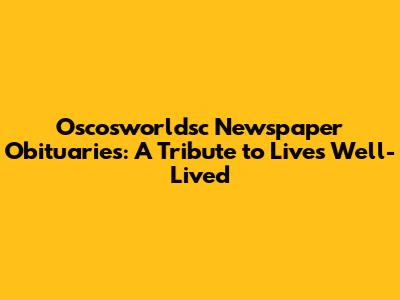 Oscosworldsc Newspaper Obituaries: Remembering Lives Lived
