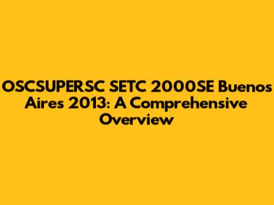 OSCSUPERSC SETC 2000SE Buenos Aires 2013: A Deep Dive