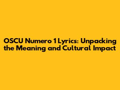 OSCU Numero 1 Lyrics: A Deep Dive Into Meaning & Impact