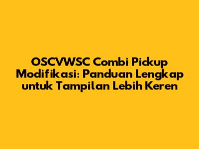 OSCVWSC Combi Pickup: Modifikasi, Tips & Inspirasi Keren